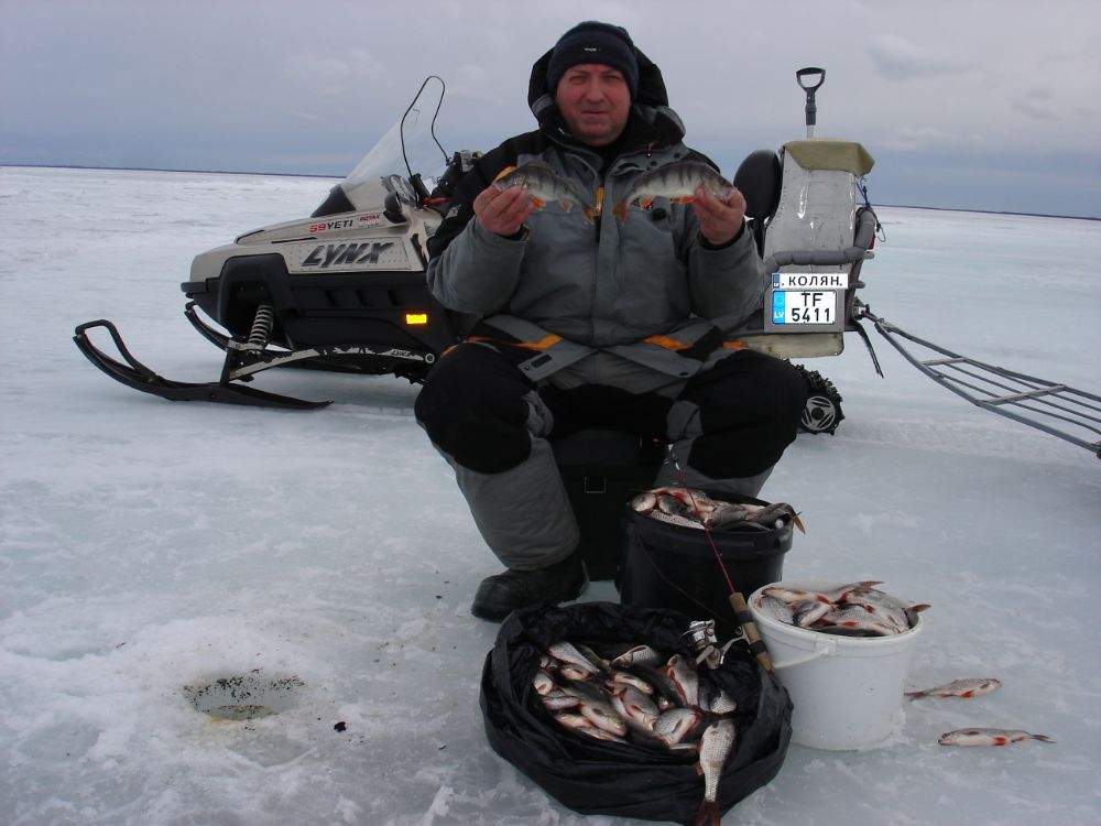 Поставив сани на ребро, было лучше чем в полатке. Рыбаков на озере практически не было, насколько хватало зрения везде пустота. До восьми утра, окунь хорошо брал на железо, затем туда же мормышку и понеслось дальше, после 11 часов ветер пошёл на убыль. Частенько проскакивала плотка, но было очень много живцового размера, после трёх часов дня рыбе дали отмашку и началось эльдорадо. В этот день ловили до 5 часов вечера и за два часа выполнили дневной план. За день у берега лёд стал хрупкий, и при заезде обратно лёд начал ломаться, благо это было в протоке, еле успел отогнать снежик на более крепкую основу. Следом за мной ехал извощик , лёд не выдержал и двое саней легли на пузо разломав напрочь протоку. День второй, как попасть на озеро протока у основания проломана, сани перенесли парни по берегу, снежик не перетащишь весит 350 кг и по берегу не проехать. Разогнав коня по битуму льду и воде едва не утопив железяку попал на озеро. Озеро в этот день ожило, народ чуть не бегом бежал, всем хочется воблы. Оная весь день ловилась справна, даже лёгкая измарась не являлась помехай, как обычно вперемешку проскакивал сковородочник. Нельзя не отметить и густеру, очень активно принимала участие, а вобла с неё очень уж вкусная.