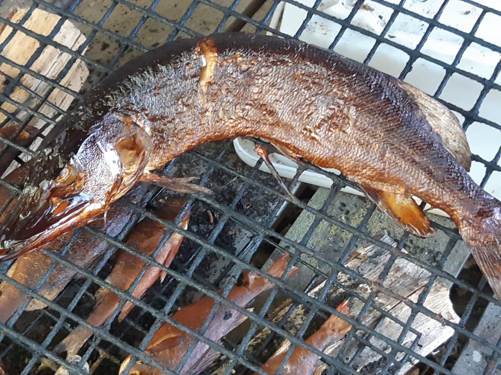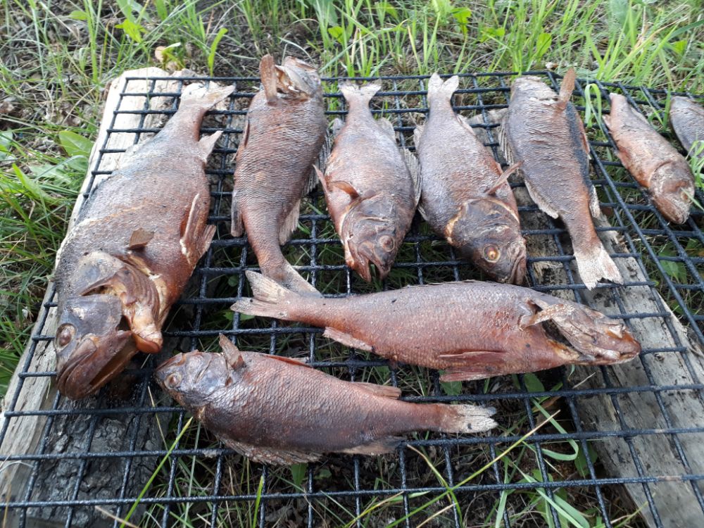 Температура воды опять на пару градусов упала как и уровень , но рыб отозвался сразу , трава уже стелется по поверхности , так что проводку не всегда чисто получается сделать . Рыб всё ещё не держится большой стаей , при поклёвках больше двух вставал на якорь , но клева как на чёрных камнях не было , дальше в дрейфе . Да и рыб заметно отошёл от берега , иногда проскакивали не плохие экземпляры , много и мелочи , так на покоптить получилось .