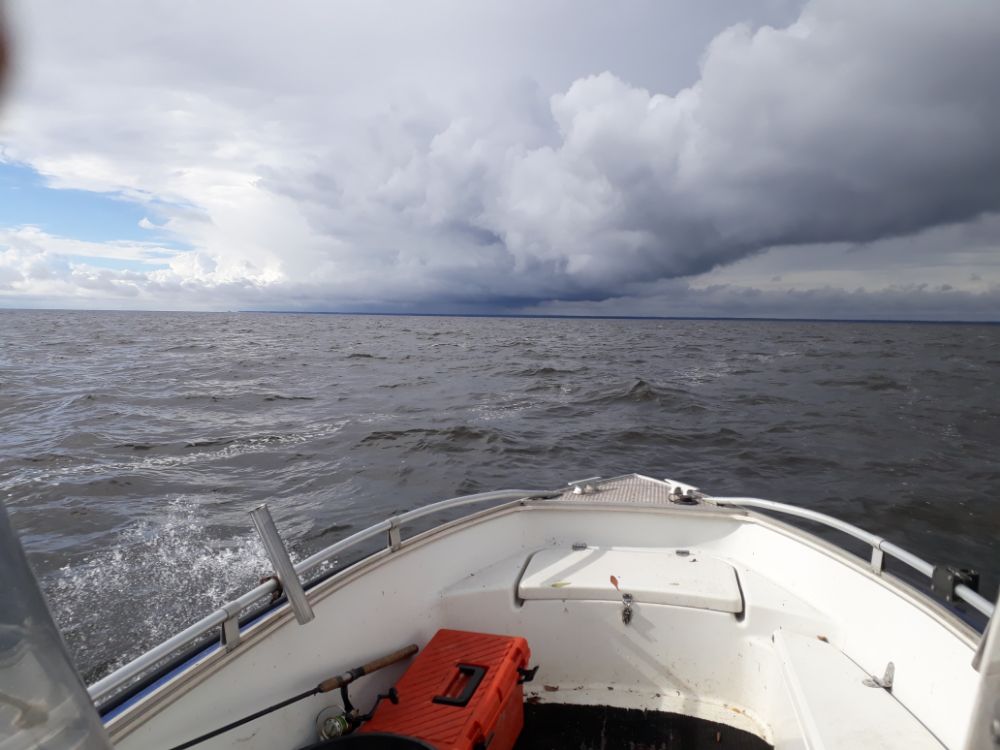 Ветер в озере порывами иногда под десятку , но в принципе терпимо , плюс без волны .