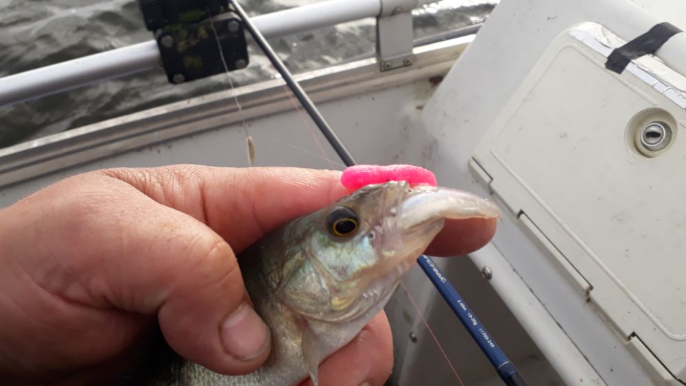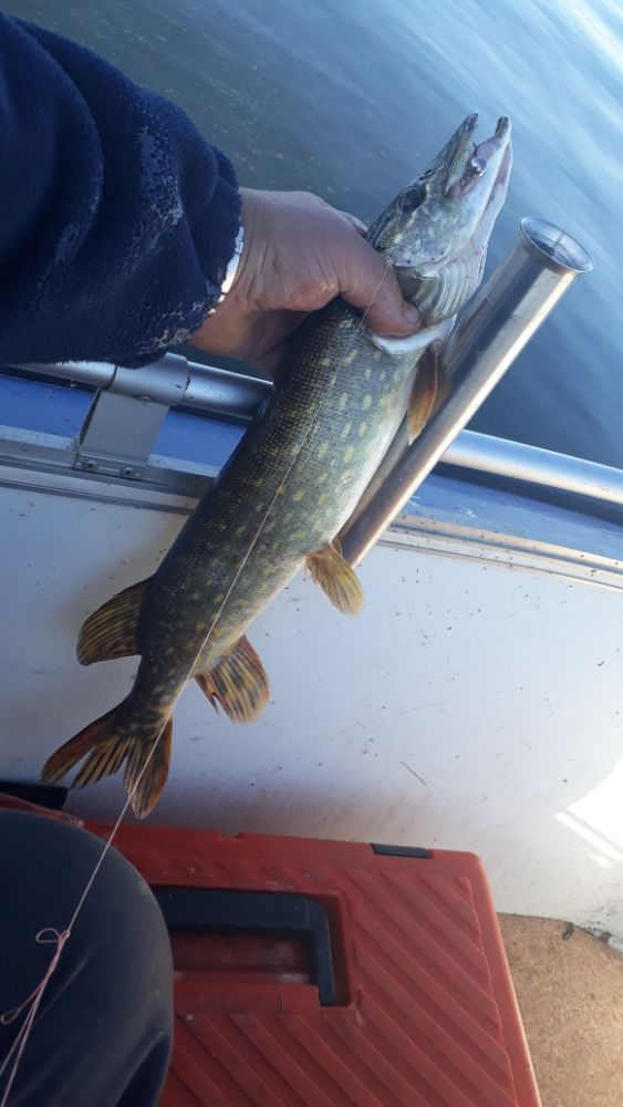 Так как ловлю без поводков , в прошлый раз просто при проводке , бымс без удара и чую джига нету , так вот ту поймал , что на фотке , ну которую надо было отпустить , так вот сегодня тоже , поклёвка , ну может на грамм 500 поболе , в лодку спином не поднять , подсак в лом доставать , а смысл , всё одно скажут мелочь , короче за шнур поднимаю и сход .