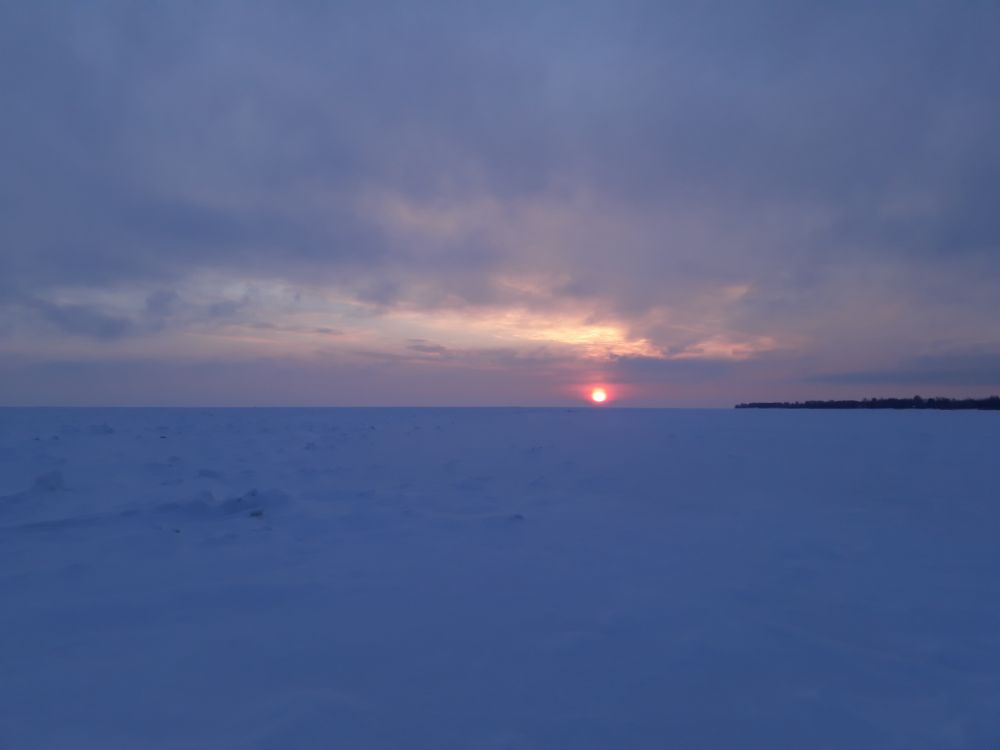 Получилось вчера выбраться на озеро, прогноз обещал шикарную погоду со слабеньким ветром, небольшим плюсом по температуре, сухо и даже солнечно в районе обеда. Утром, подъезжая под зарядом мокрого снега, в такой красивый прогноз верилось с трудом и напрасно! Погодка не подвела, днём над озером чистое небо, в стороне эстонского берега всё небо тёмно-синее.
