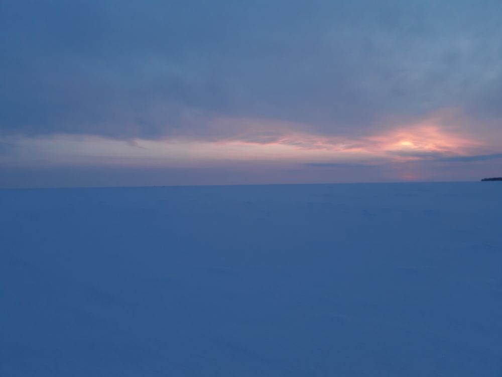 Получилось вчера выбраться на озеро, прогноз обещал шикарную погоду со слабеньким ветром, небольшим плюсом по температуре, сухо и даже солнечно в районе обеда. Утром, подъезжая под зарядом мокрого снега, в такой красивый прогноз верилось с трудом и напрасно! Погодка не подвела, днём над озером чистое небо, в стороне эстонского берега всё небо тёмно-синее.