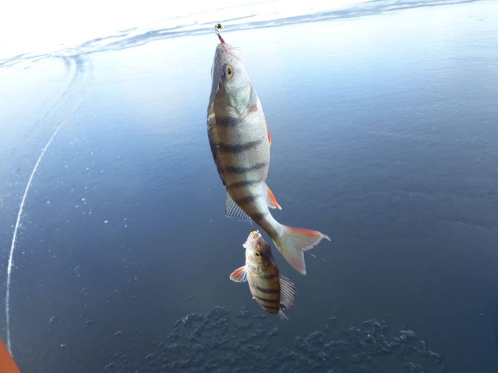. Вот что значит сезон пропустить. Ещё пол км и хватит. На удивление поклёвки сразу, но размер... Почти всех в лунку. Меньше 100 гр. не брал, поэтому за весь день только 4 штучки. Зато получал кайф от погоды, морозца и практически полного безветрия. Да и поклёвок насмотрелся