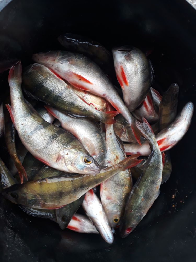 Окунь и не такой уж мелкий как бывало , но и не крупный.