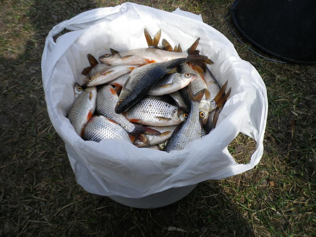 ..рыбы забрали 14кг, отбирали только крупных, плотва разная, в речке крепкая, в заводи течёт..