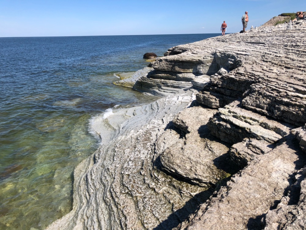 Погода в субботу вопреки пятничному прогнозу была свежая, дуло 4-5 метров, шли комфортные 30-35км/ч. Дошли до острова за примерно час двадцать. Я планировал выйти и попробовать в дрейфе половить камбалу на глубине, но на воде находиться было не комфортно и решил присоединиться к остальным и отправиться в поход к маяку. Остров интересный, много военной инфраструктуры, само-собой разрушенной. Искупались на восточном побережье острова на плитняке и двинули в обратный путь. У маяка есть небольшая кафешка где можно пообедать и передохнуть (Пяева суп 5 еур).