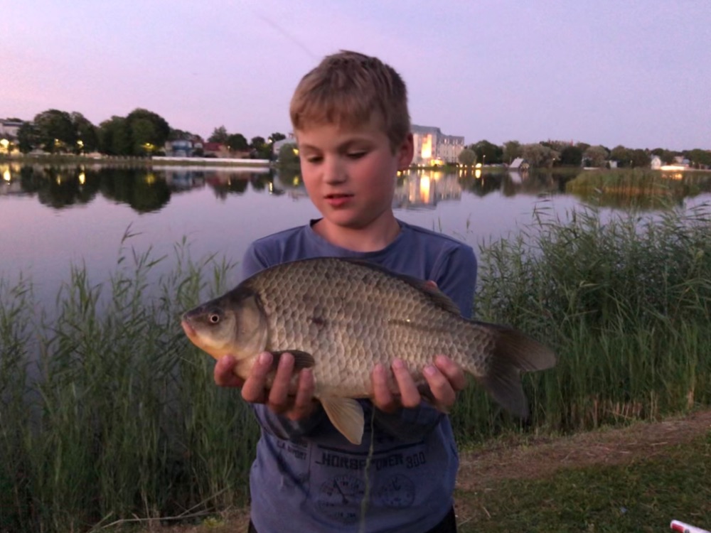 У соседей дела шли получше - огромная краснопёрка и хорошие караси. Карась на фото соседский
