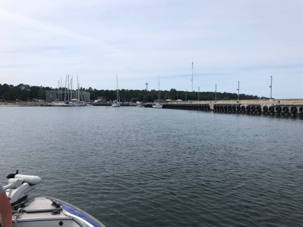 Возвращаясь в пятницу с Перакюла, заехали в порт Дирхами и посмотрели что там со слипом. Оказалось там идёт стройка и слип разрушен, в этом сезоне там лодку не скинешь, но порт работает и лодки с яхтами заходят, бар забит до отказу