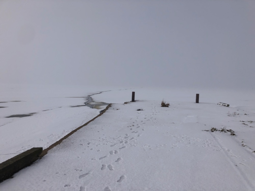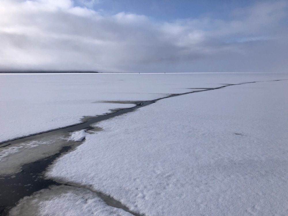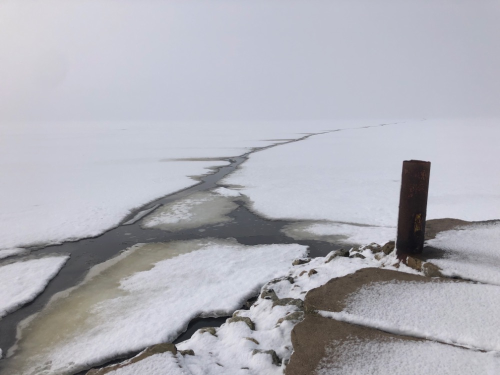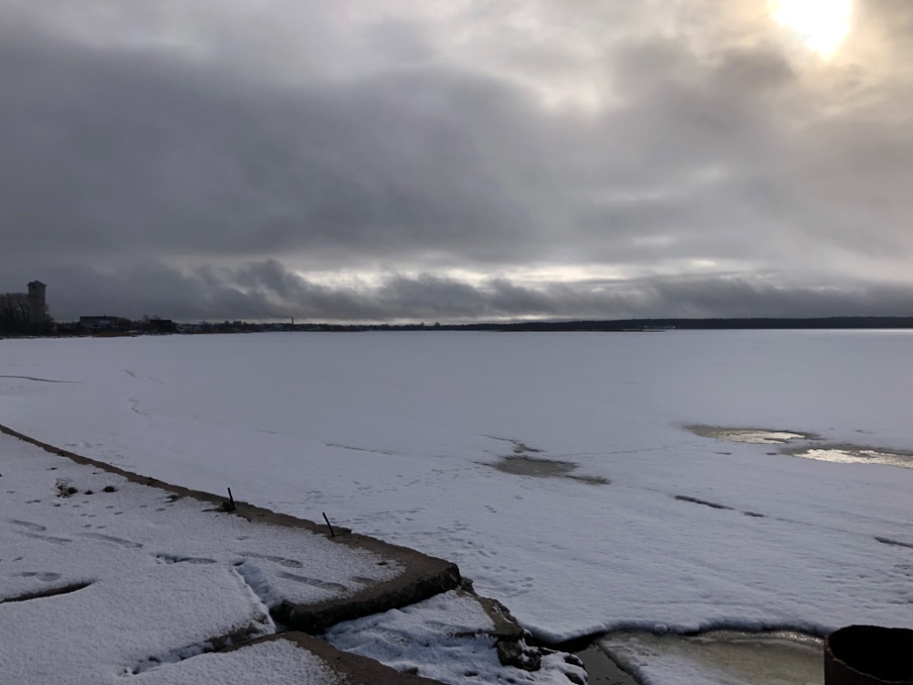 На сегодня был намечен пробный выход на лёд. Планировали выйти напротив Хобулайда, но решили сначала проверить лёд поблизости, около Рыбзавода. Картина не радужная, лёд как губка, ногу не держит. Бур заходит как в масло.