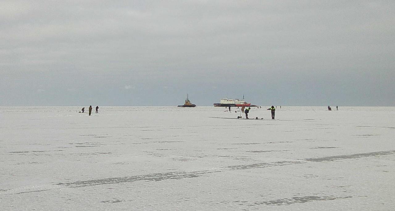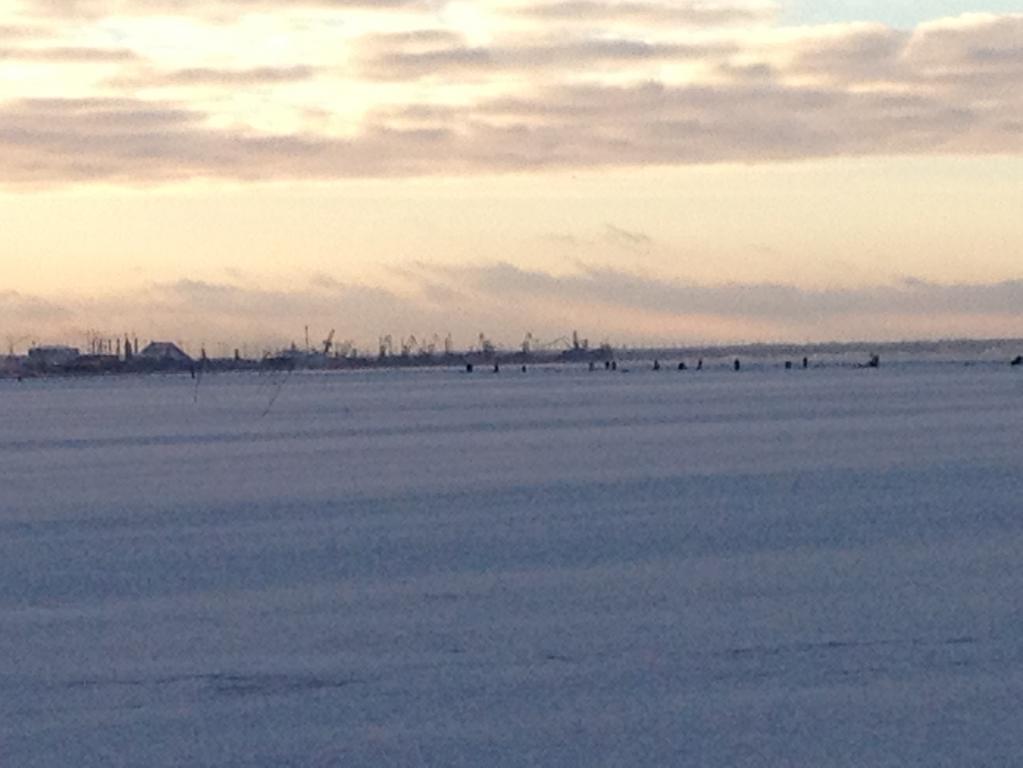 Погода была просто сказка - полный штиль и около 14 градусов мороза. Дорожка натоптано, идти легко и за какие-то 30-40 минут мы оказались уже за 4 км от берега.