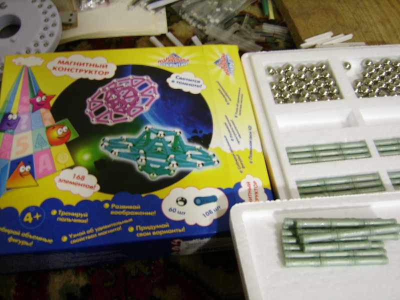 Во всех других попадавшихся мне конструкторах неодимовые магнитики были заметно меньше, правда, видел конструктор от той же Борнимаго, где, похоже, магниты-амбалы...