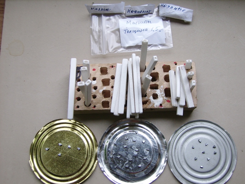 Грузики делаю из свинца. Правда, магнитящихся металлов известно всего 3, и свинца среди них не наблюдается... Я перебрал несколько способов решения этой проблемы, в итоге вроде нашёл наиболее приемлемый для себя, правда, пришлось под это делать кое-какой девайс из стали.