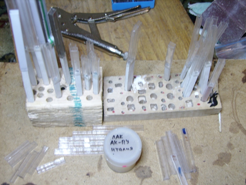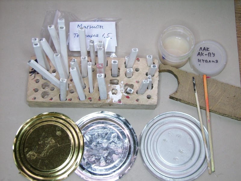 Отверстия под магнитики желательно делать на такую глубину, чтобы магнитики притапливались. После высыхания клея нужно подточить торец (слегка закруглив). Если есть нужда ослабить силу магнитика, на торец можно нанести дополнительные покрытия (я использую всё тот же акрил-полиуретановый лак, немного загустевший).