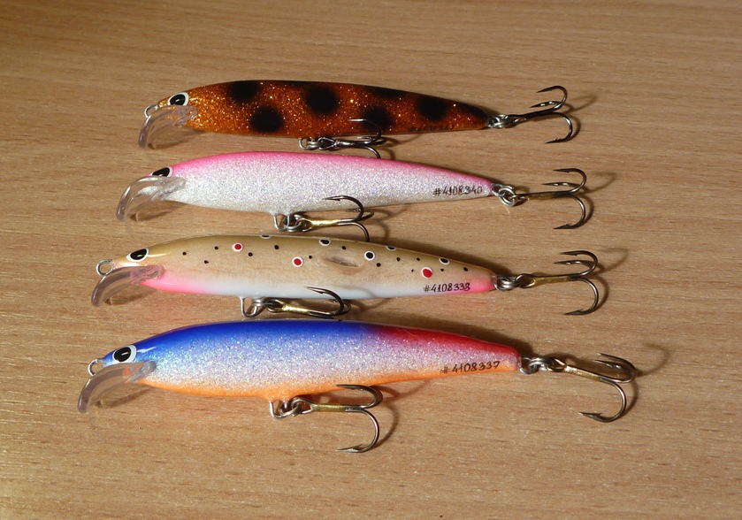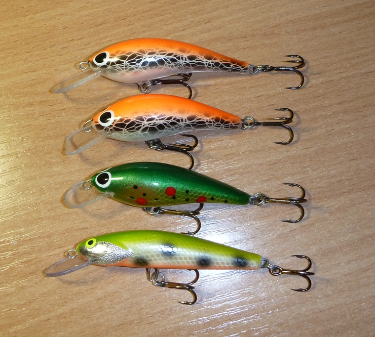 5 см. вобики на малые речки, за конопатой пойдут. а те, что по более - для щуки! Думаю запускать их в Нарвском водохранилище или на озёрах Карелии! Ну и по расцветкам - самые востребованные на мой взгляд!