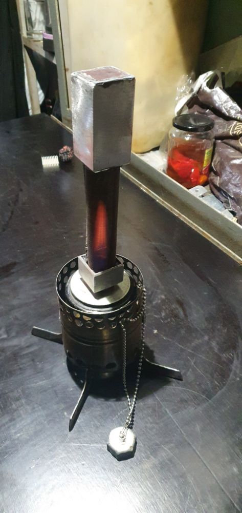 Собрал сегодня теплообменник, теперь "реактор", мини печь на спирту для обогрева палатки, можно в полевых условиях испытывать, так сказать придал ему товарный вид.