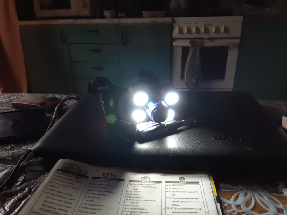 Можно включать один или оба, + режимы, заряжать мобильной зарядкой или адаптером в машине кроме как от розетки, на зарядном блоке с акку есть красный лед, который можно выключать в этой версии, не светит в глаза сзади идущему, но для велика гуд, плюс индикатор заряда, жаль не разряда. 18650-ые акку поставил от какой-то старой игрушки, держат ещё около 2,5 ампера, весной светил на рыбалке два вечера по часа 3, одним ледом, редко двумя и не на всю катушку, пару раз юзал на машине, до сих пор светят достаточно на 10 метров без подзаряда.