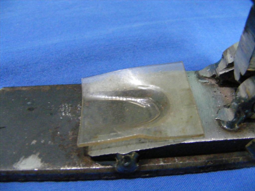 2. Впадину под петлю. Тупо направил струю на плоскость. расплавилось - потекло в стороны, получилась аккуратная выемка, опять же не требующая обработки. Небольшой буртик по краям, естественно... но если мешает, срезать не проблема, только уж тогда полировать придется.