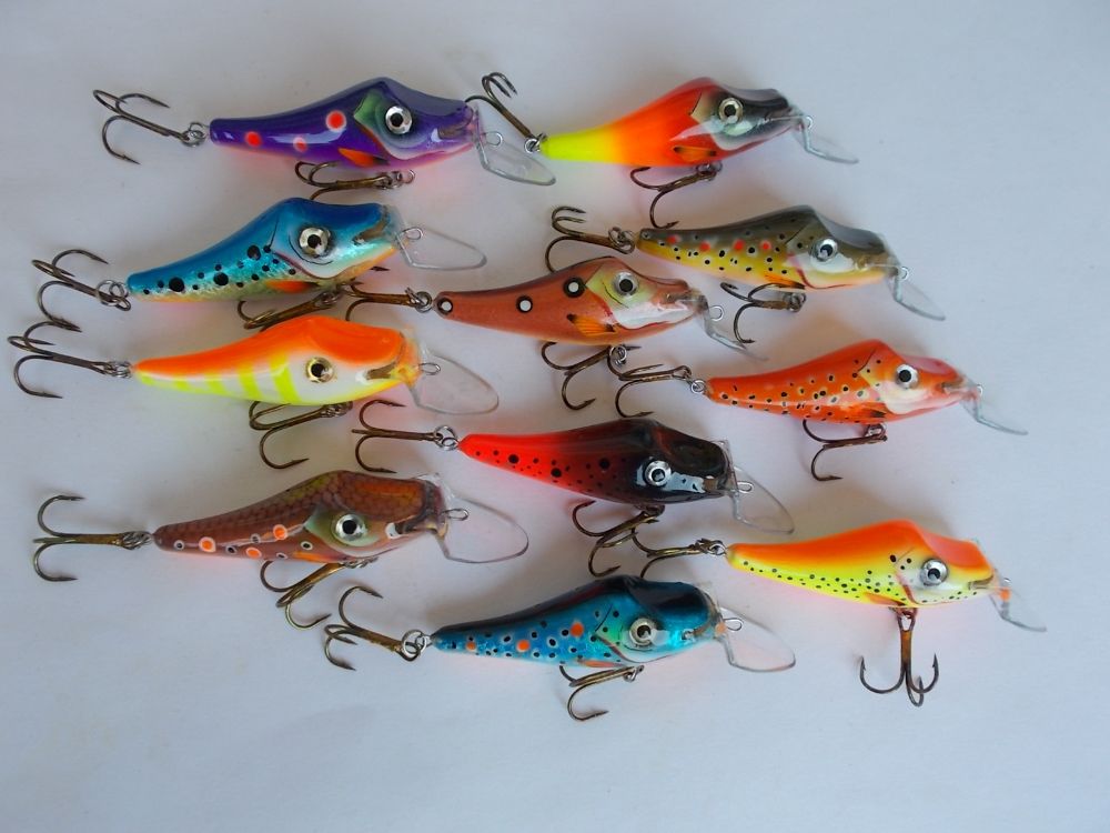 Абаша, 70мм. вес с крючками около 10гр. плавающие. Лопасть прямая, заглубление около 1-1,5 метра.