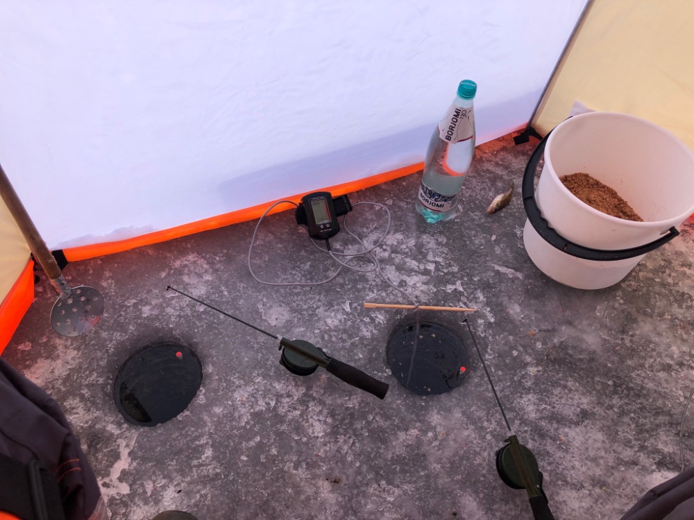 Начал сверлится с 9 км и так в пустую с периодичностью до 20 , там высадив ребят и оставив санки как маяк , каждый ударился в поиски , я больше удалялся в сторону юга , был уже почти напротив Калласте ,результат как всегда , в одной лунке цепанешь тройку мелочи и пипец , дальше в поиск .