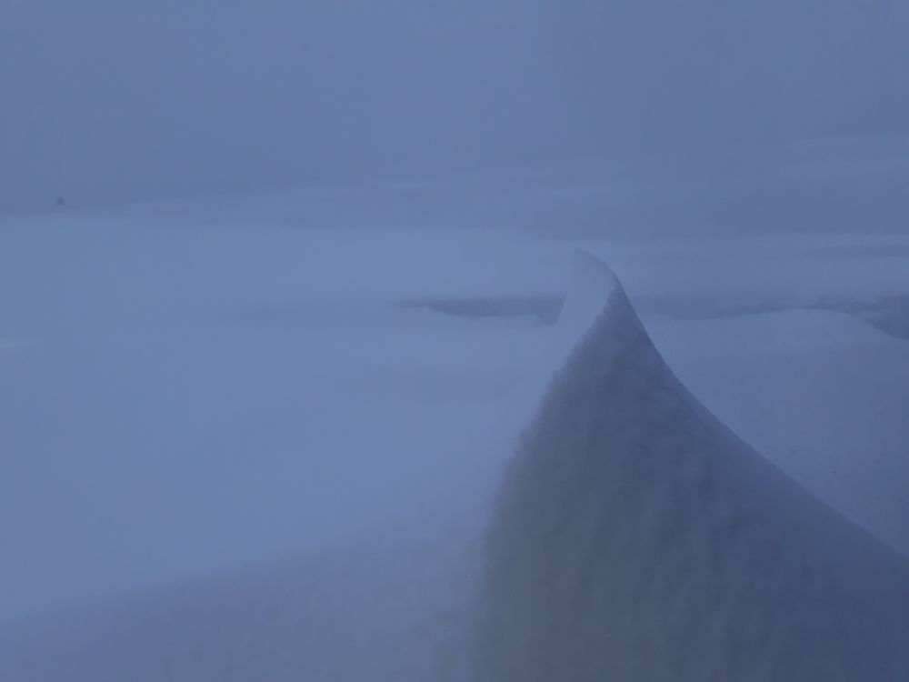 В 13 я пристегнул стул к санкам. В 14 позёмка начала доставать, мелкая снежная пыль крутилась у лица в завихрении и начала збивать глаза. В начале 16 часов я здался и мы поехали на базу.