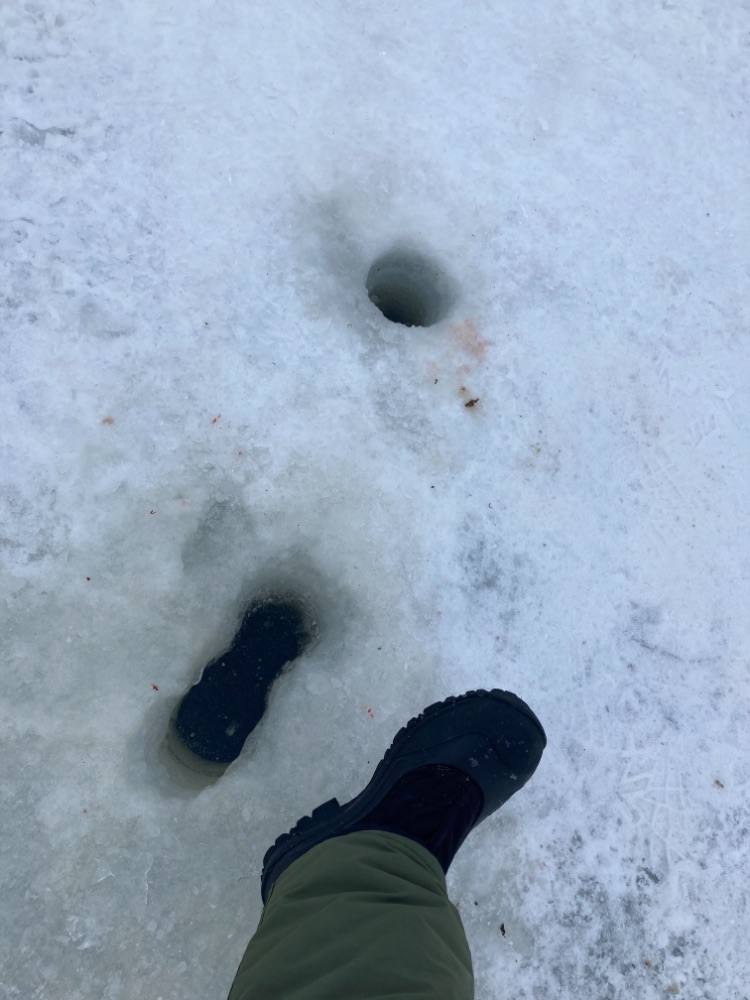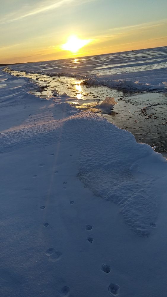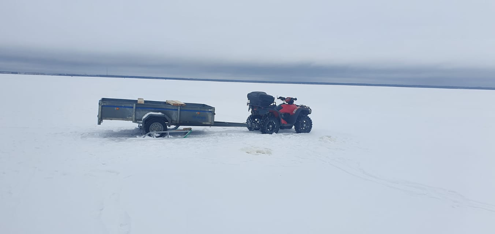 После обеда вышло солнце, хоть ветер и не стихал, ловить было комфортно. Вокруг никого не было, поджопники в этот раз обошли нас стороной. В какой-то момент со стороны границы подъехал снежик, но предусмотрительно остановился довольно далеко от нас. Было видно что человек адекватный, не то что некоторые. Немного посверлив он отчалил назад, в сторону границы.