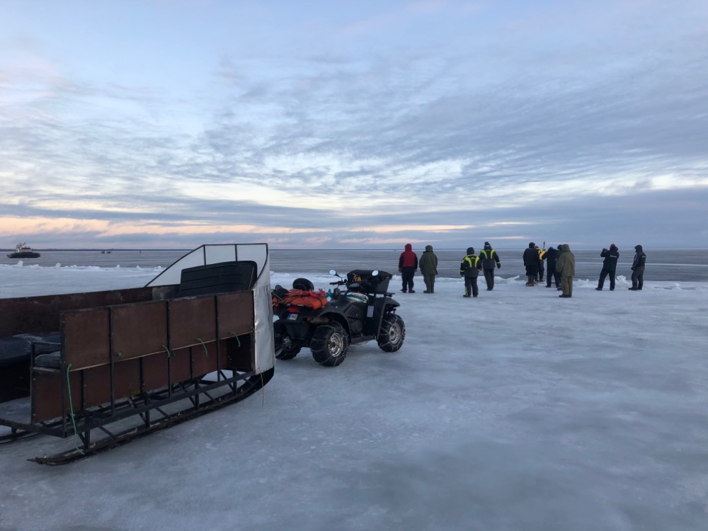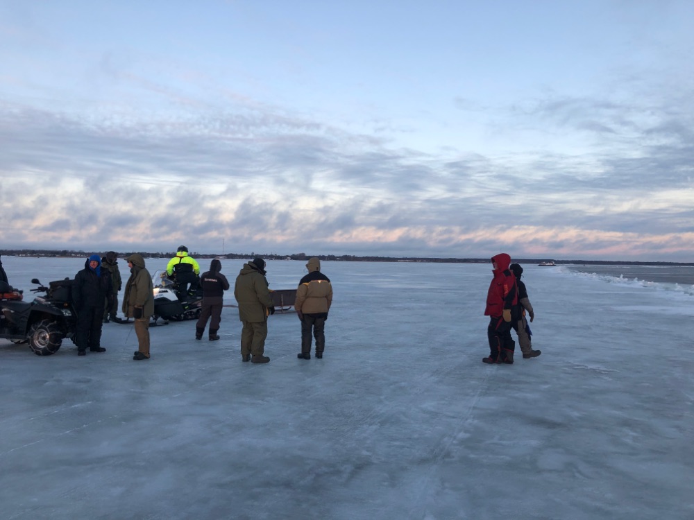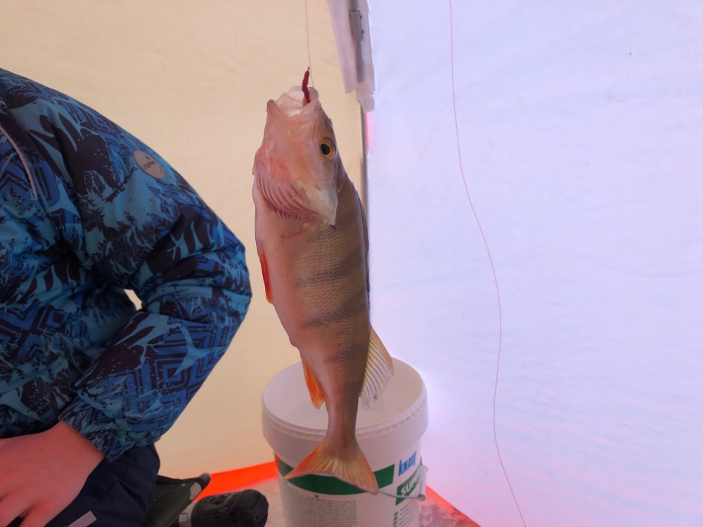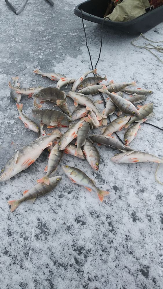 Учитывая прошлые события на озере, переться в одиночку с сыном поутру на свои плотвиные точки желания не было - эта зона была порвана и как там лёд было не известно. Решил присоединиться к компании и уже вдесятером отправиться на поиски окуня.