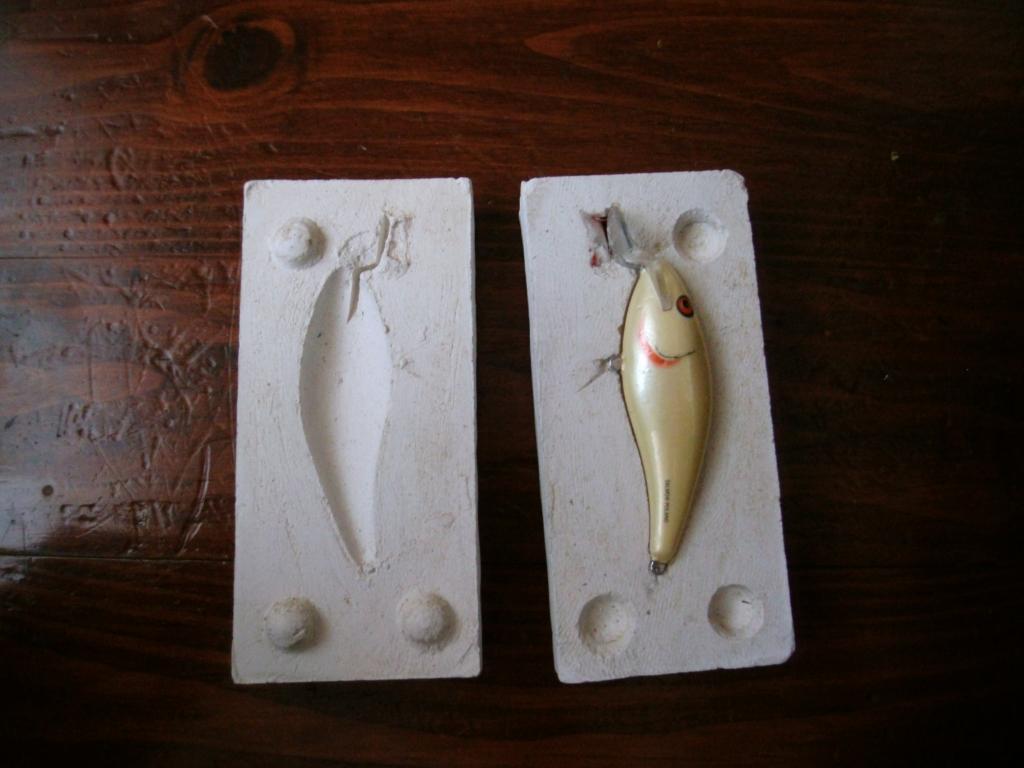 Sergey62 писал(а):Полуформа матрицы- гипс , вложена модель- дерево точнее воблер готовый,разделитель вазелин, все прилипло и гипс и воблер