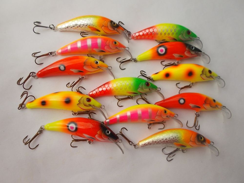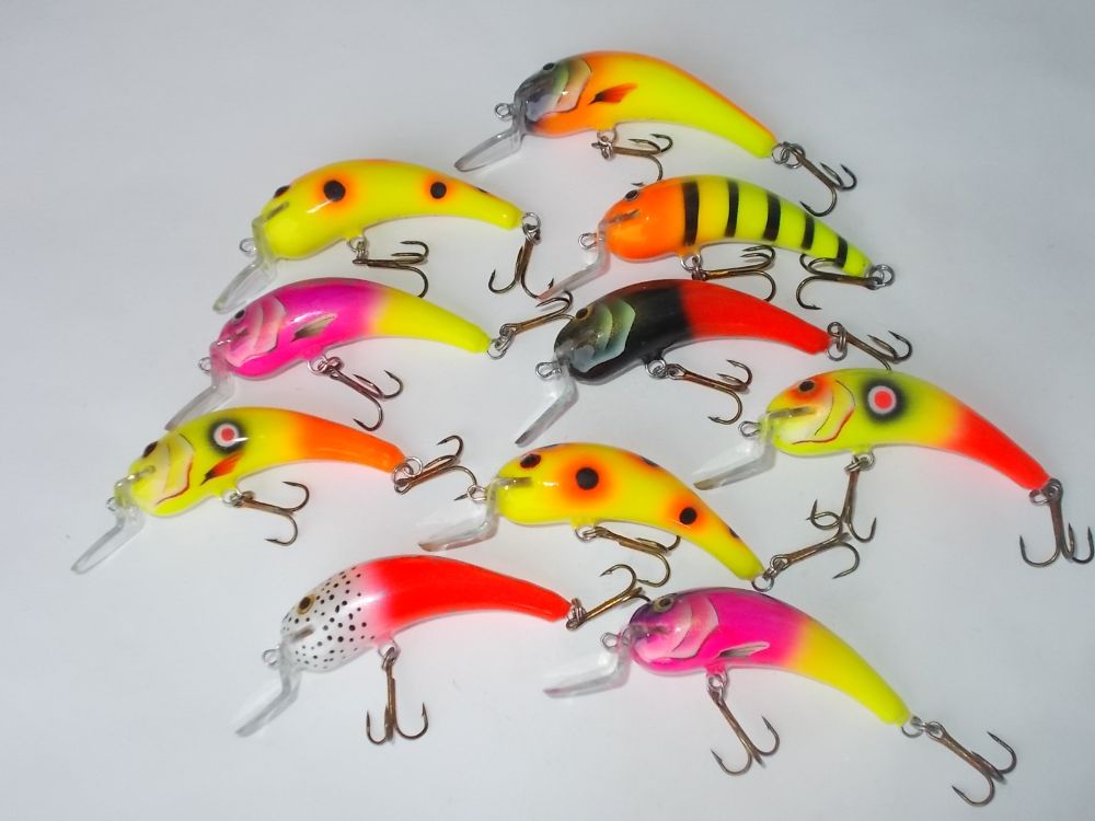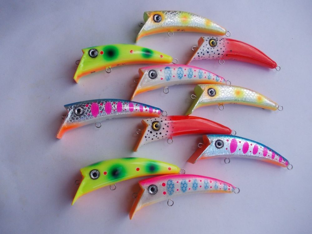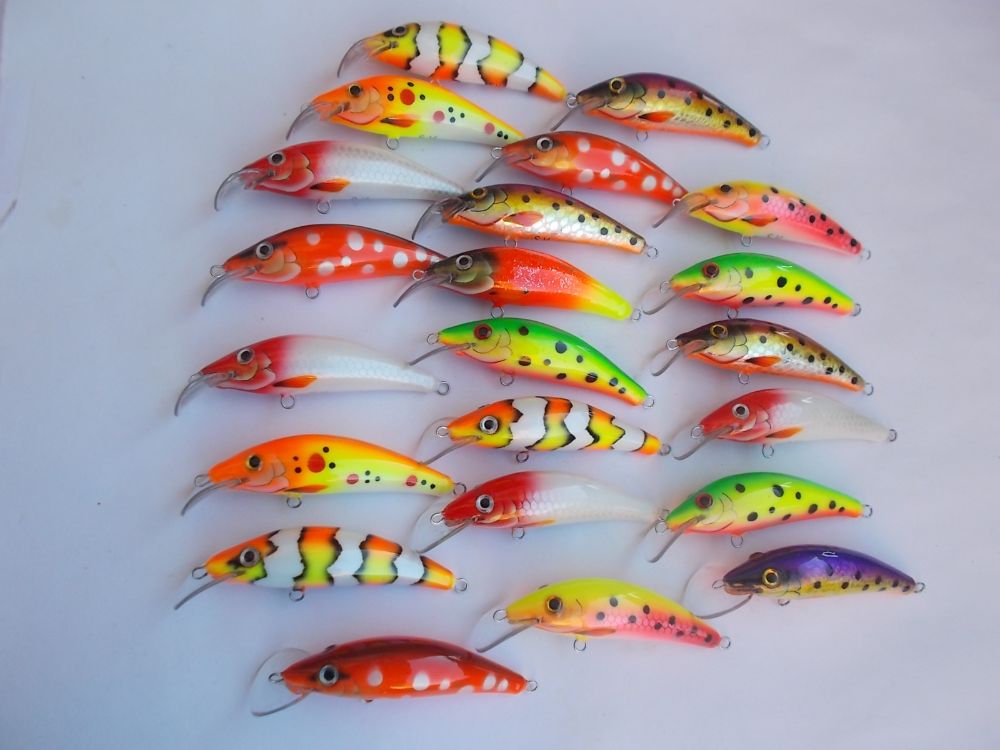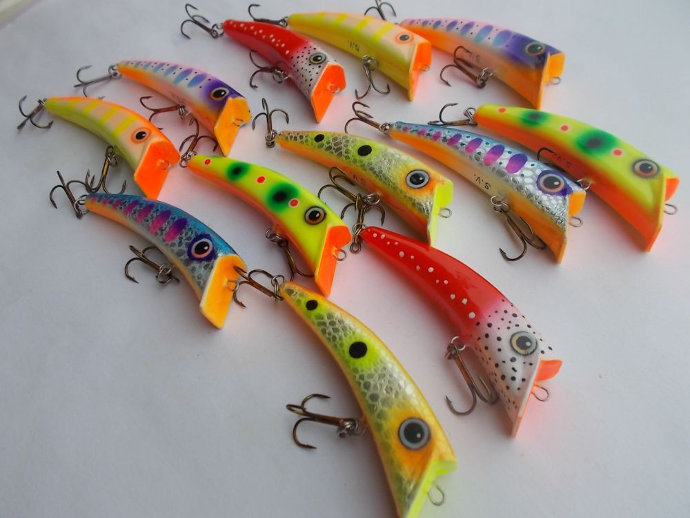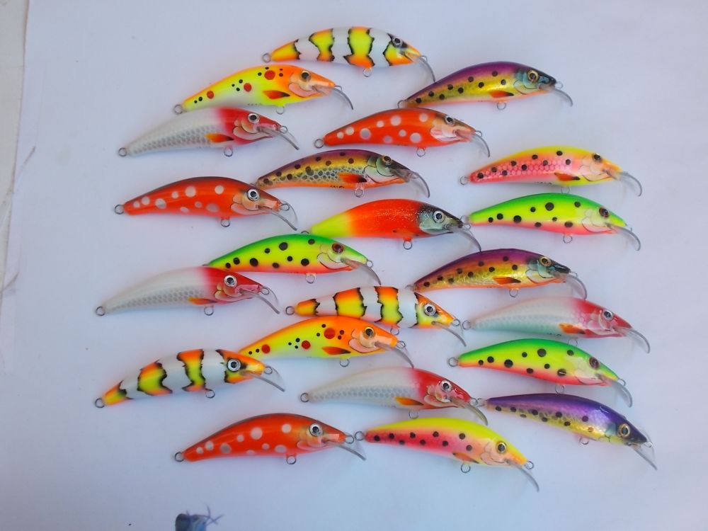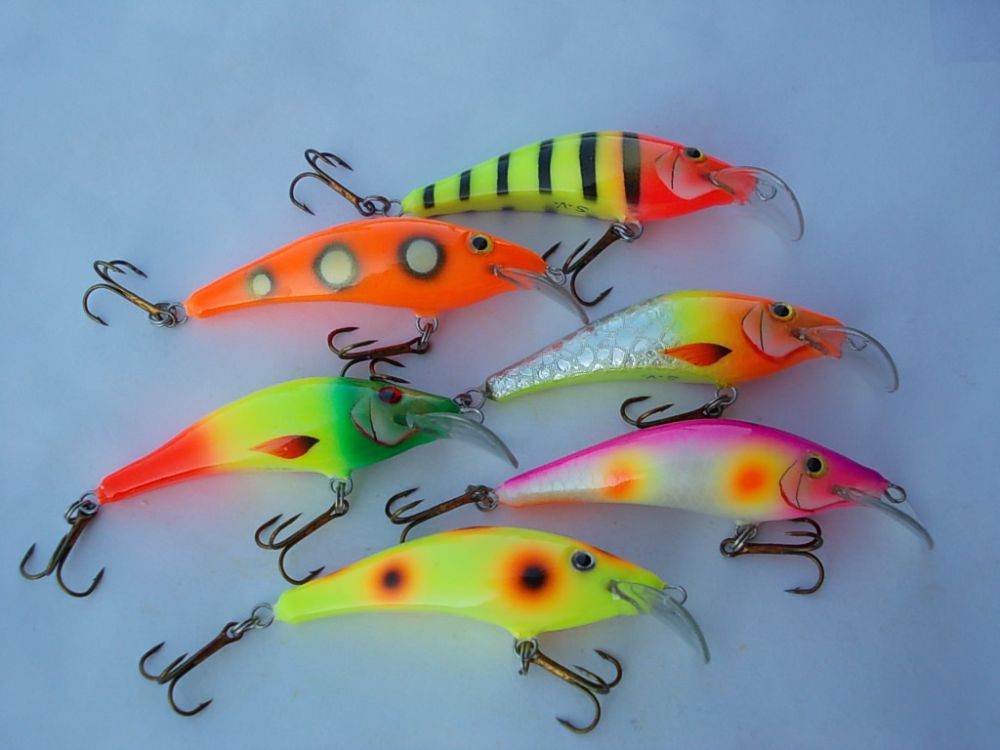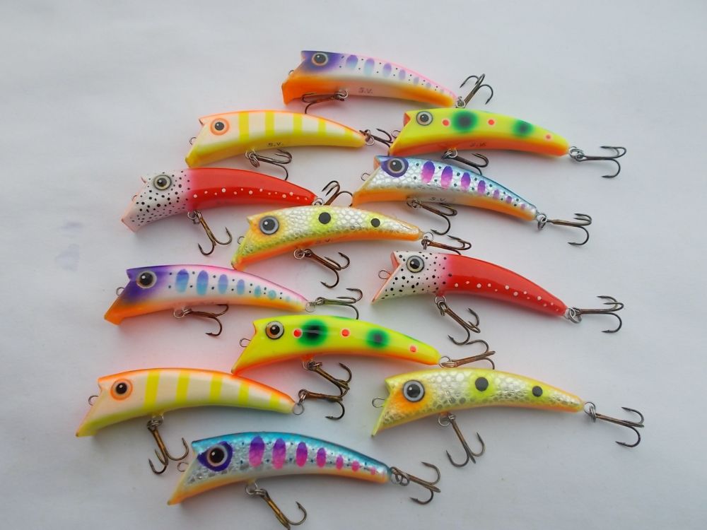 Вспененное ПВХ 95мм. типа караси, вес примерно 28гр. плавающие , тихие(без погремух) заглубление примерно 4-5 метров.