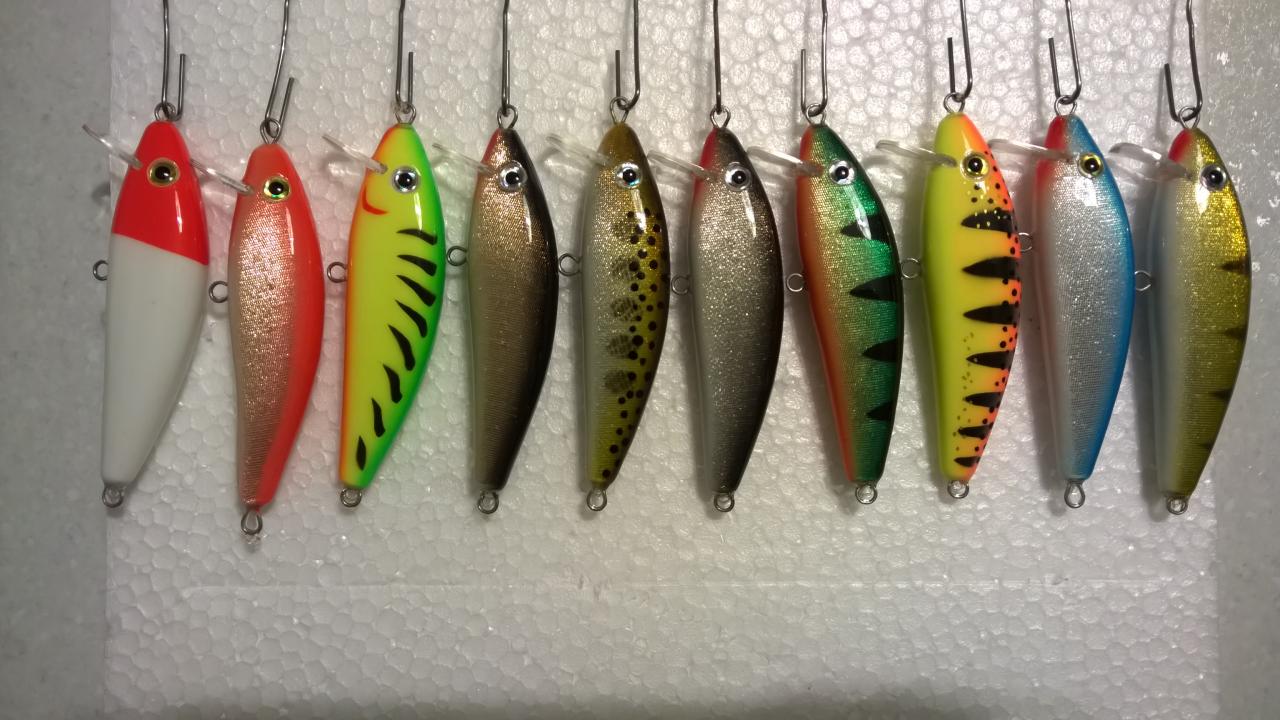 Что бы не дать теме застояться, поспешу со своими свежими приманками. Начал делать партию с целью освоить парчу. Хочу выразить благодарность Володе Стеклодуву за подробный видео урок по обклейке воблеров парчой. Пока работал пришёл к мнению, что обклеивать парчой следует по серебристому или золотистому лаку. Тогда покрытие получается более "плотным", как по грунтовке. Парча золотистая и серебристая. Некоторые закрашены флюриком. Финиш КАБ.