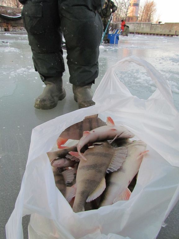 Недавно вернулись после двухдневного скитания дружной компанией из восьми обезбашенных. Прицел был на полосатую рыбку. Рыба конечно есть, но уж очень капризная, да ещё размерчик совсем не детский. Поэтому вчера пришлось буквально прикармливать мормышками. Только я отпирсинговал восемь рыбок. И не в бестолковости или неосторожности с неумелостью дело, а дело в размере окуньков. Ты его подсекаешь и упираешься в стену. Подолгу стоит и бодаеться как бычок а под лункой устраивает такое, что подчас на стравливание лески уже нет возможности. И за льдинки смёрзшиеся леска цепляеться, что вообще лишает шансов сохранить мормышку. Сухой щелчок рвущейся лески и ....