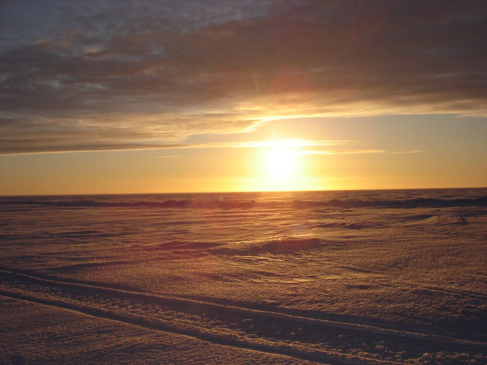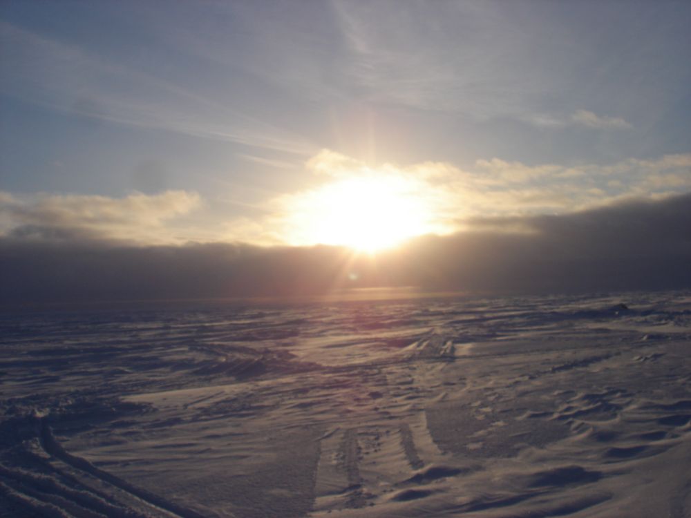 5,6 Января. Выходные выдались сродни прошлых, боковой ветер намастрячил поперечных барханов, туман и видимости ни какой, езда не из приятных. На борту семеро, и едем на тринадцатый там где ещё не выбита рыба. Окунь был активен всё время нашего пребывания, у меня это происходило с одной лунки. В этот день я вспомнил про палатку, которая была бы кстати, сани поставленные набок от метели не спасали. К часу дня мои бойцы попросились на берег, да и мне тое кино не надо. Воскресенья, уже полегче нет метели и ветра.