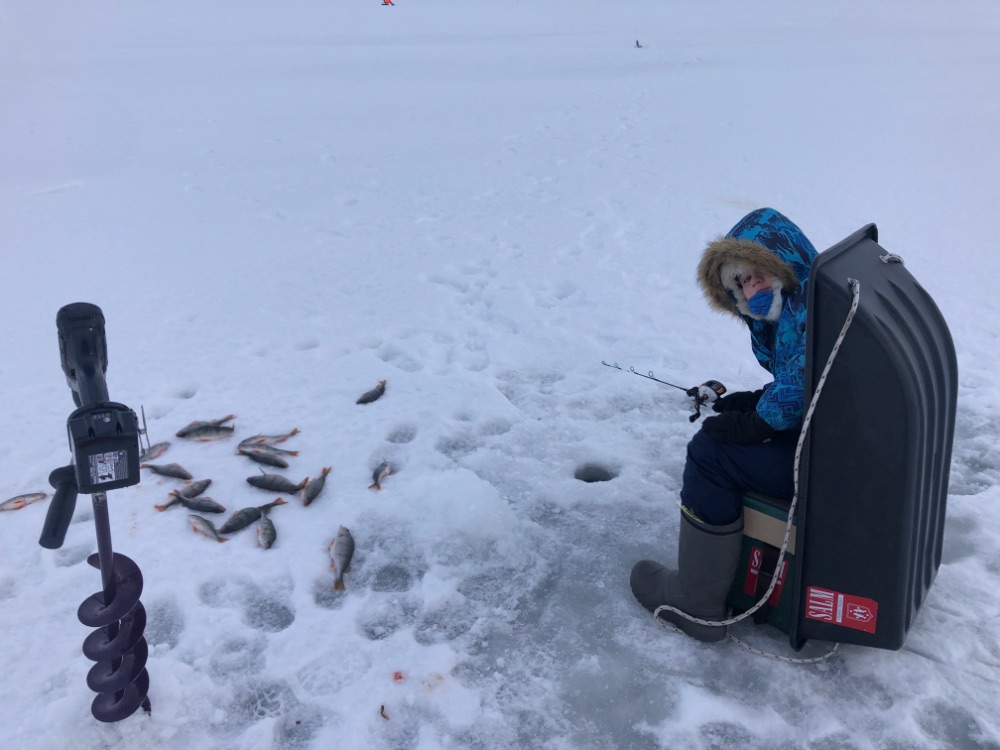 Провёл несколько последних дней на озере. Впечатления разные. Где рыба была, теперь тишина. Подвыбили или ушла, так и не понял. Ну это обычное дело, ноги в руки и искать. Правда погода вносит коррективы. озеро размочалило так. что не проехать. не просверлить дырку нормально не получается. Но как бы то ни было норму выполнял. Окунь разный, много отправляются обратно, но есть и достойные. И конечно без поджопников никуда. В воскресенье один запарковлся меtров 50 от моего снежика. Тут же второй подтянулся. Следом собачник нарисовался. Вот и хана хорошему месту. Как людям объяснять, что поджопничать не только стыдно, но и позорно. Сделал несколько кадров, но озеро забрало дань. Телефон тю тю.