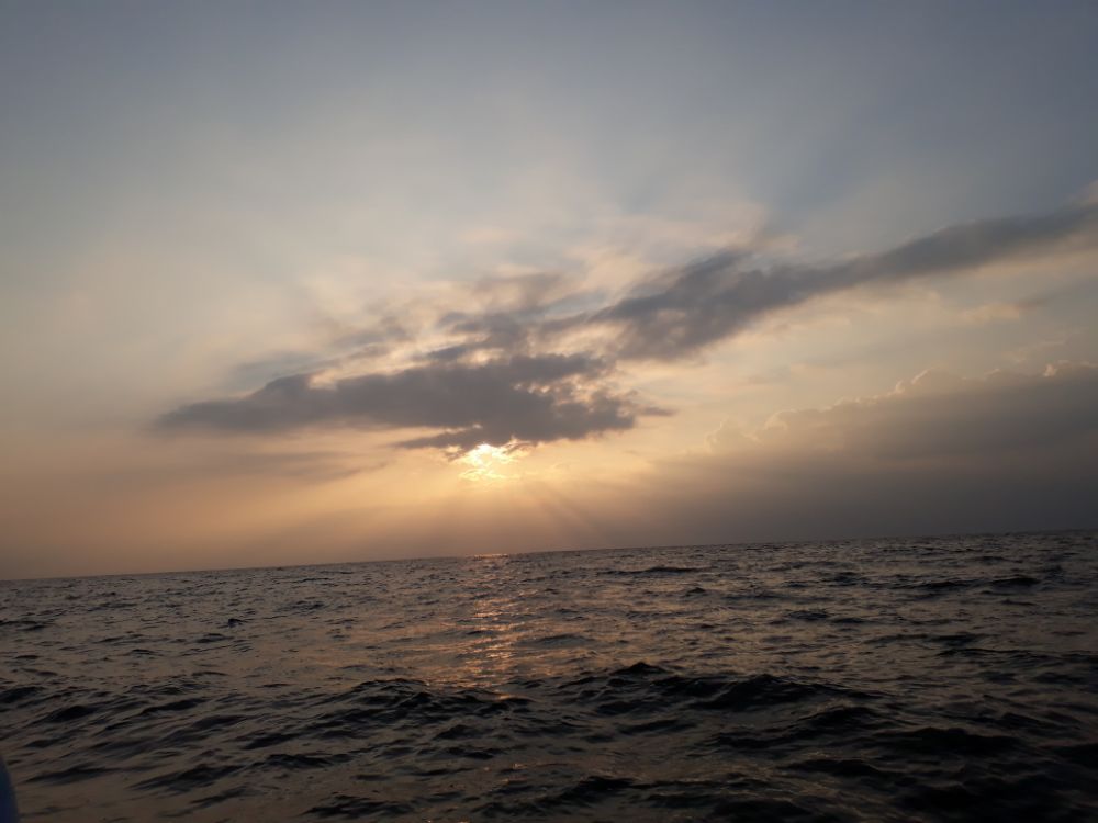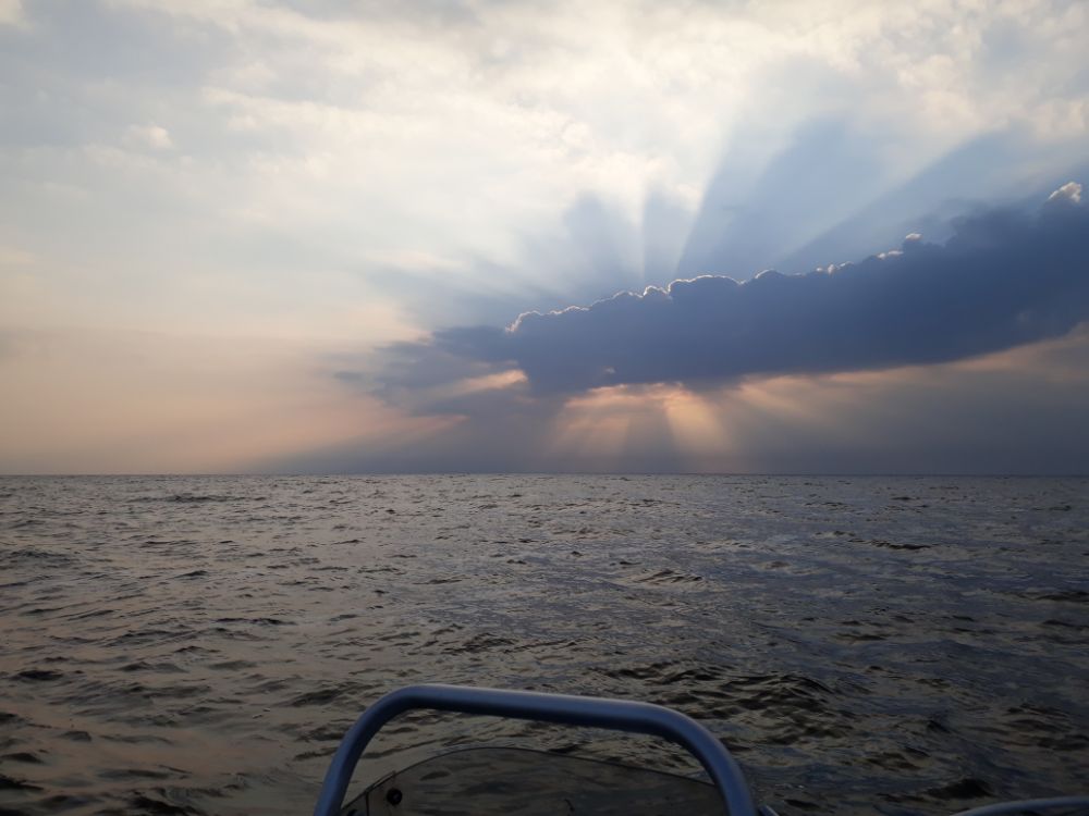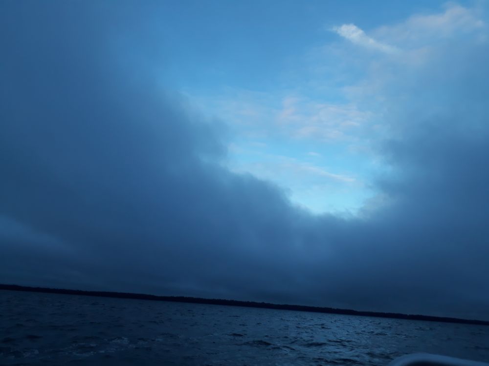 Оказалось еще и туман добовлял темноты и как то странно он держался , на берег не выходил и от берега на пару км и стоял плотной стеной , как вышел с тумана так вдоль стенки до места и шлепал.