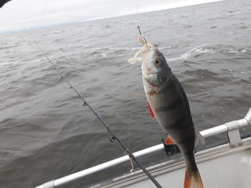 Погода как поменялась , ту субботу штиль и в эту ветер с ног сдувал , но хорошо хоть с берега , но точка в трех км от берега и там уже не комильфо , но одно радовало , ни одного поджопника , даже на горизонте , рыбка все также сто , сто писят грамм , может трехсотых с пяток , посмотрел фотки прошлой осени , вот там окуни "по три ", а сегодня "по рублю."