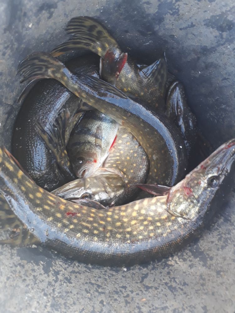 Вымучил одну щучку и 4 окушка , но правда хороших. И опять же ,окунь одиночный , стаи нет .