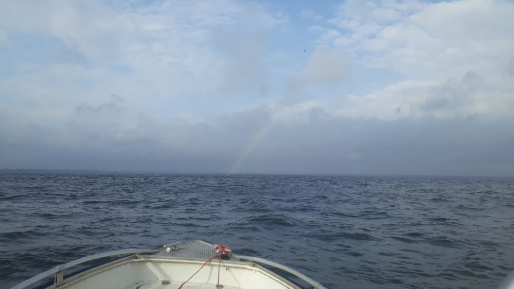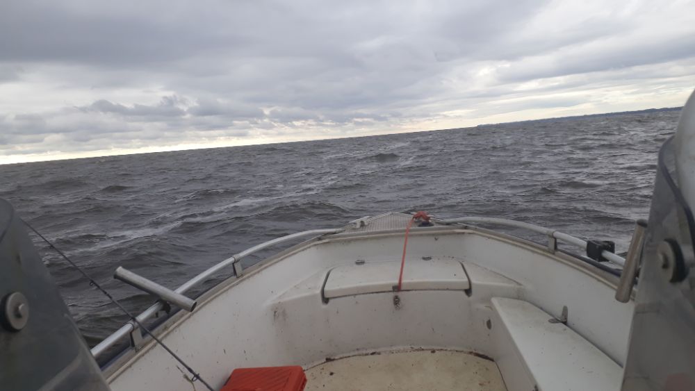 Прогноз на субботу тот еще был , но встав с утра шума прибоя не услышал , ветер с берега , да вроде и не такой большой , как показалось . А вот на точке в 3х км от берега , да волны большой не было , но ветреще , вода мутная , кругом тучи дождевые и рыба рот закрыла , вообщем немного помедитировал и до дому слегка побрившись .