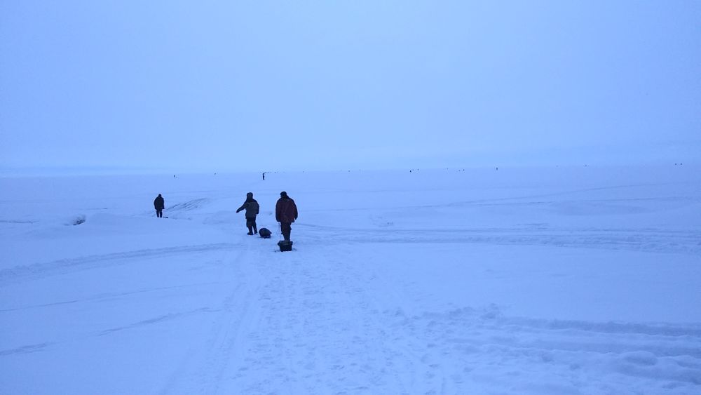 Взял мини отпуск и с удовольствием провёл несколько дней на озере. Пока технику не открыли есть шанс поднабраться здоровья и погулять ножками. Снегу не много, ход хороший. Походил по озеру в разных местах. От Уускюла до Смольниц. Рыба есть везде. И как везде её нужно поискать. Но если наступишь на голову, то всю рыбалку сделаешь с одной лунки.Вот к примеру вчера товарищ удачно присел: В рыбу особо не упирался, больше пяти кил с озера не забирал, да и то фильтрованного. Потом вечерком не напрягаясь делал филе.