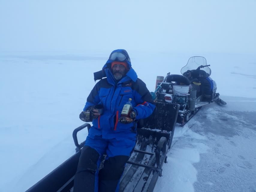 Решил с утра начать ловить по трещине , клевало ,но размер не радовал , перемещался , сверлил и при очередном перемещении проваливаюсь , скорость не большая снежик не успевает выскочить , лыжи на твердом льду , жопа по сидушку в воде , хорошо второй лед , но правда глубина по колено , чую сам то куй вытащу ,собрался уже Янке звонить ,а тут как раз вдоль трещины, квадрик с прицепо едет , ну тормознулись , выдернули , спасибо им большое , в благодарность вывез их на точку где мы ловили .