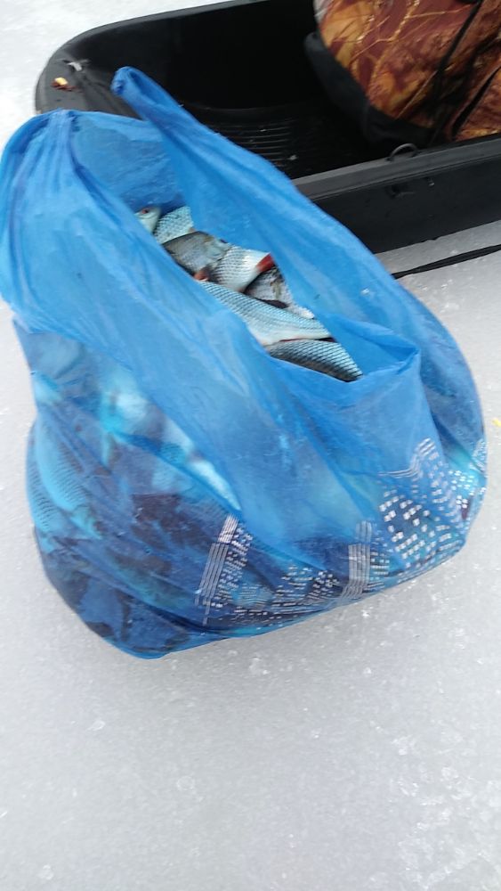 Думал больше не поеду, однако не удержался от предложения друга закрыть сезон. Хотя лёд ещё хорош, но хватит. Деревня на год сушёной рыбкой обеспечена.. Вчера опять хорошо, 23кг взял. На том спасибо озеру и водяному. Всем удачи и не хворать
