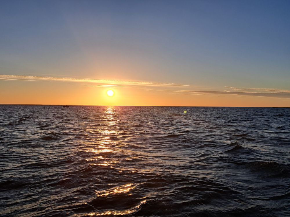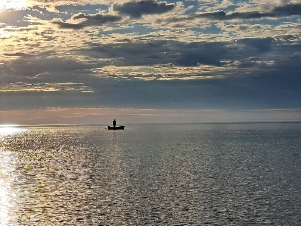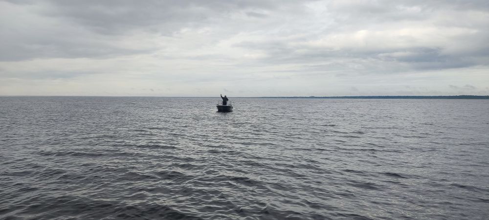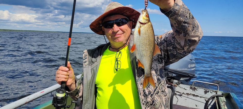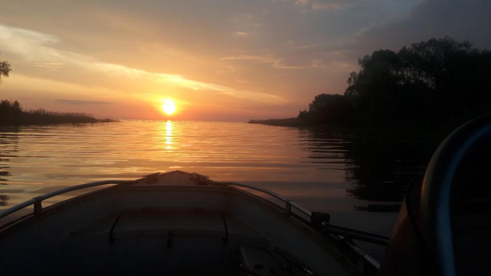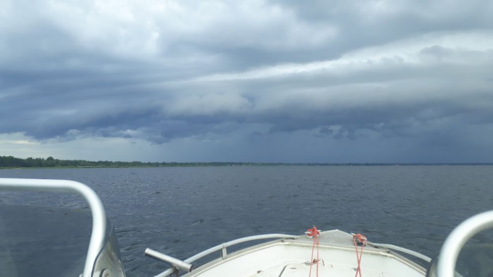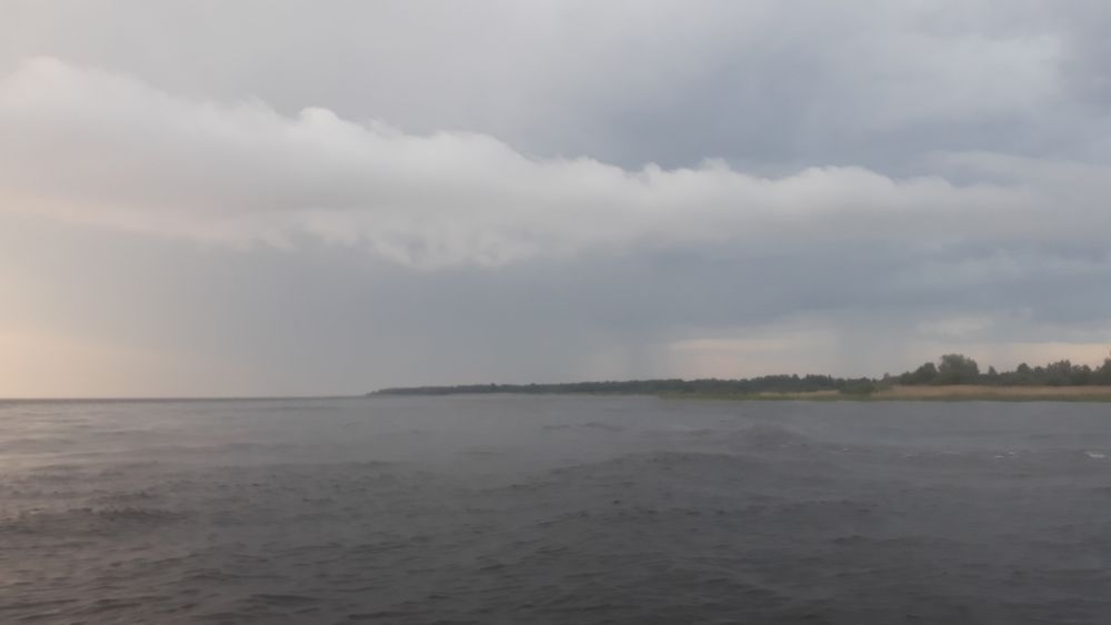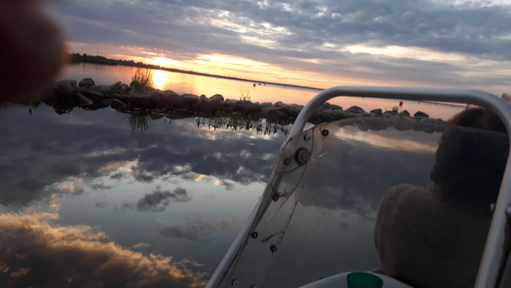 За три выходных дня, выбрались разок, в субботу. В остальные дни, ветер с утра с озера, волну аж в реку гонит. В понедельник вышли на берег с утра, посмотрели на озеро, рукой махнули и спать дальше ушли.
