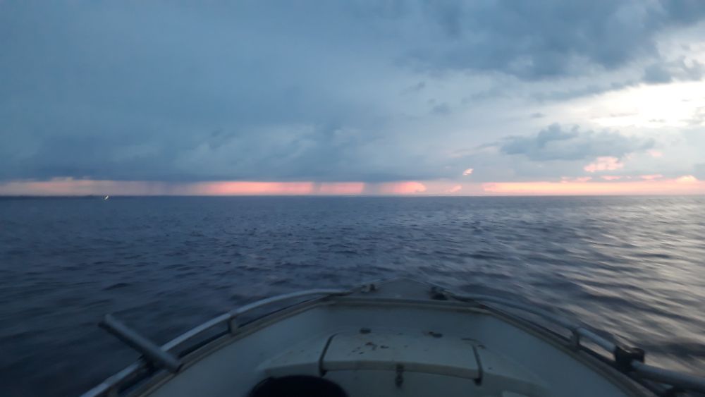 Вышли в начале пятого , ветер не такой сильный , но на горизонте тучи дождевые , на дальнюю точку не пошли , но и до ближней не подучилось , туча быстро нам окружала , уже в дождь вернулись в реку .