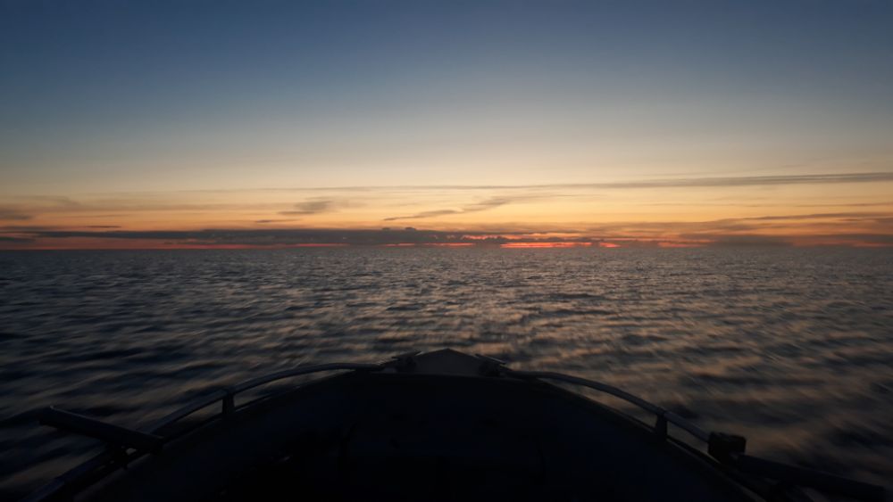 Рассвет даже фоткать не стал , серо , все небо в обаках , ветер с берега , но в озере уже и волна прихватывает , якорь не всегда лодку держит , пока камень не найдет на дне.