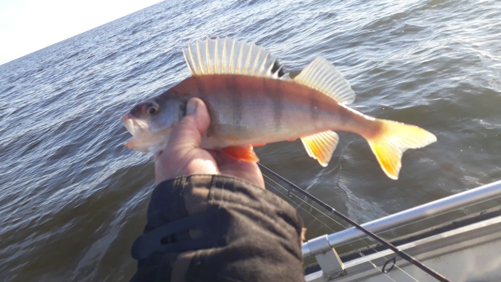 Погода ,ветер под 5 метров и соответственно волна , и дождь , но как рассвело вроде и окунь по крупнел .