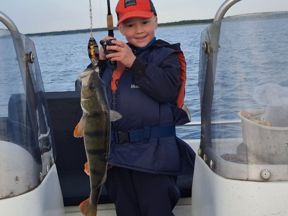 У напарника на третьем забросе щучка , следом окуни , ну щучка между делом . Ветер тащил лодку вдоль берега , так что было удобно , не заводились как неслотак и кидали , вся рыба в заброс , пару гарбузов слили , не подняли в лодку .