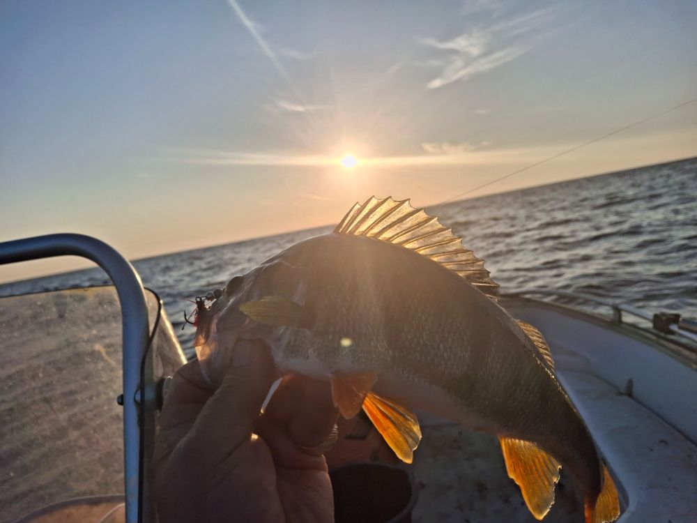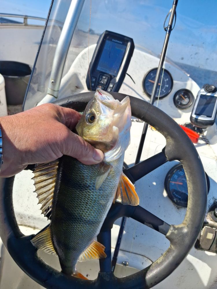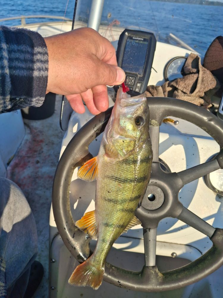 С пяток приличных окуней , пару просто даже к лодке не подтянуть было , но как и бывает , солнце вышло и клев подзатих. Рыбу ждёт.