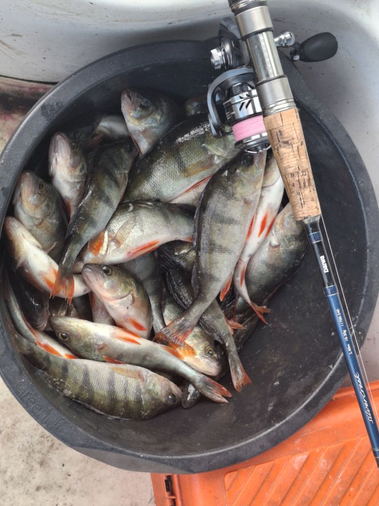 О рыбалка , то вообще поклевки не видишь, а сегодня наверно такого и не было ни когда , каждый заброс и не то что поклевка , а именно с рыбой , а то ещё и не с одной , да окунь помелче , не то что на железо , но его столько , в 6.00 был на воде в 8 уже на берегу , переход до точки 20 минут и обратно столько же , ведро полное , норма , а ещё чистить . В прошлый раз бак бензина зжог , и поклевки не видел , а сегодня литров 5 и с рыбой .