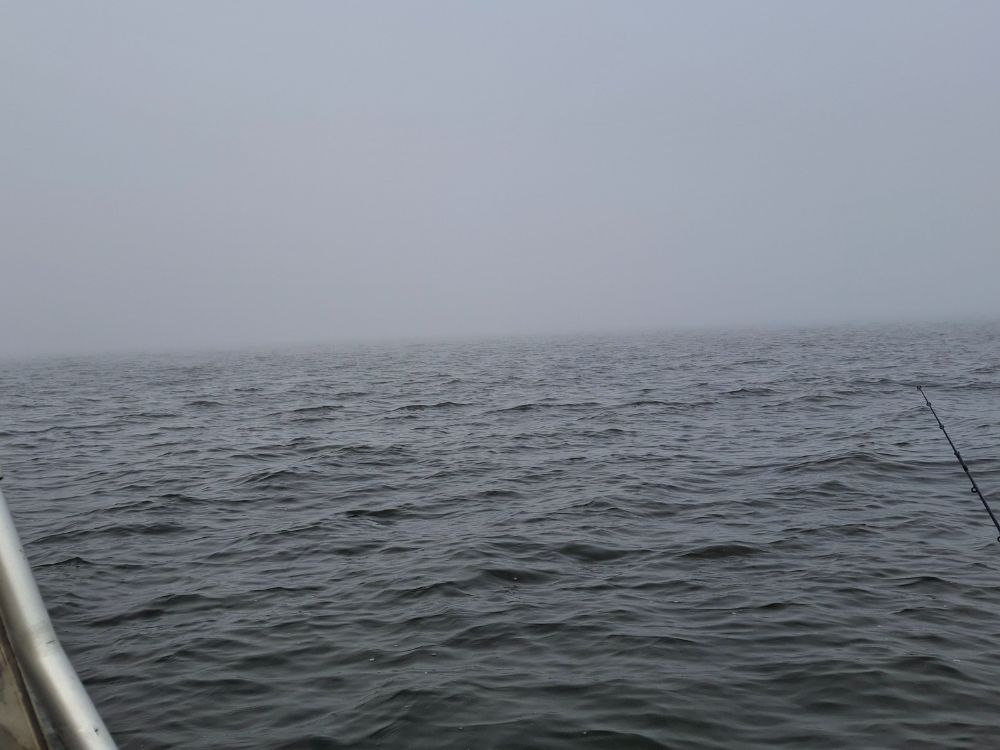 Погода сказка утра почти штиль , потом туман окутал , так что 100 метров и стена , а затем задуло с переменой ветра .