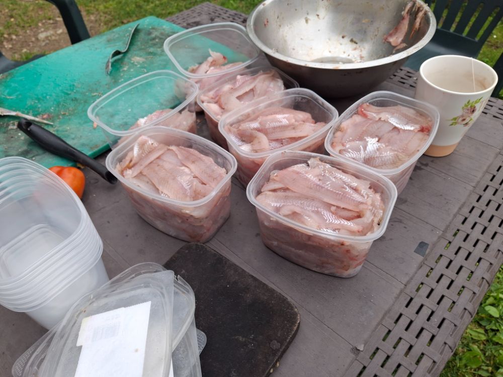 В субботу сын с другом приезжал , дрова складывали , я им баньку организовал , рыбки скоптил , с остальной рыбки филе настругал , получилось 3 кг , из хребтов и голов , уху сварганил . Проварил хорошо , процедил, хребты в сторону , добавил картошечки, специй и чистого филе окуня , умяли уху после укладки за обе щеки .