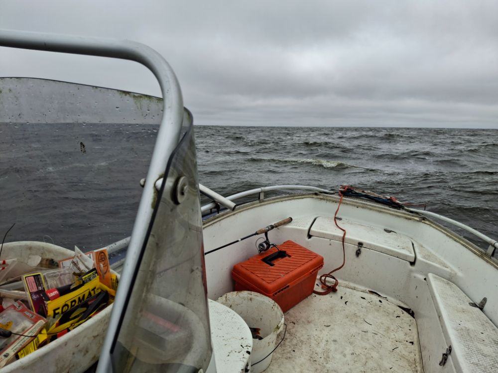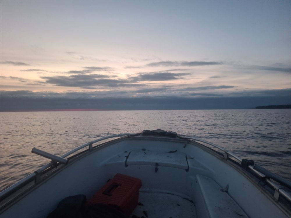 Ну вот и сейчас , встал в 6 .00 на улице ветер , но терпимо , заявился погранцам , вышел на улицу , пошёл дождь , посмотрел на это все , ладно бы что то одно , или дождь или ветер , кайфа не поймать , решил идти в дом . Дождь кончился в 8.30 , ветер усилился , ну думаю не сидеть же на берегу , выехал , ветер с берега волны пока нет но он хороший , дошлепал до точки на ....км , заякорился и на удивление окунь сразу отозвался , даже не ожидал , за часик почти полное ведро накидал , а ветер все сильней и сильней , как с якоря сорвало , решил хватит , до берега против ветра и волны шлепал почти с час .