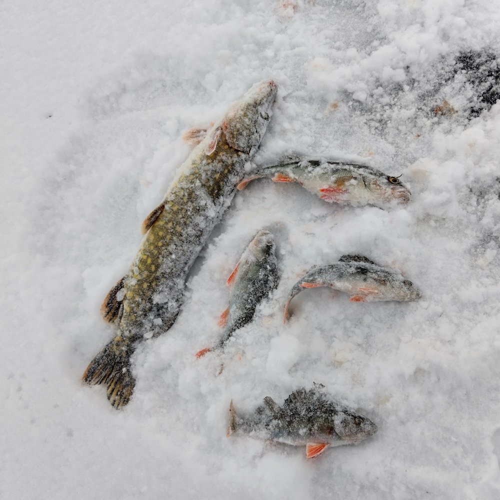 Были в субботу и воскресенье в озере. Суббота поактивней , где-то 15кил за полный день. Воскресенье кил 4=5 до 12 часов. Окунь капризный но размер радует. В субботу был лифт , где-то на пол часика, а в основном приходилось уговаривать. Морозяка холодный, а компания как всегда горячая...